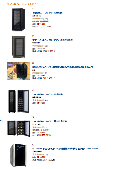 Amazon.co.jpのベストセラーランキングはこちら→ワインセラーのベストセラー